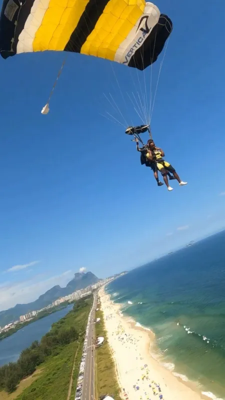 O ambiente da Barra da Tijuca, com sua vista deslumbrante e clima favorável, proporciona uma experiência única para os praticantes de paraquedismo.